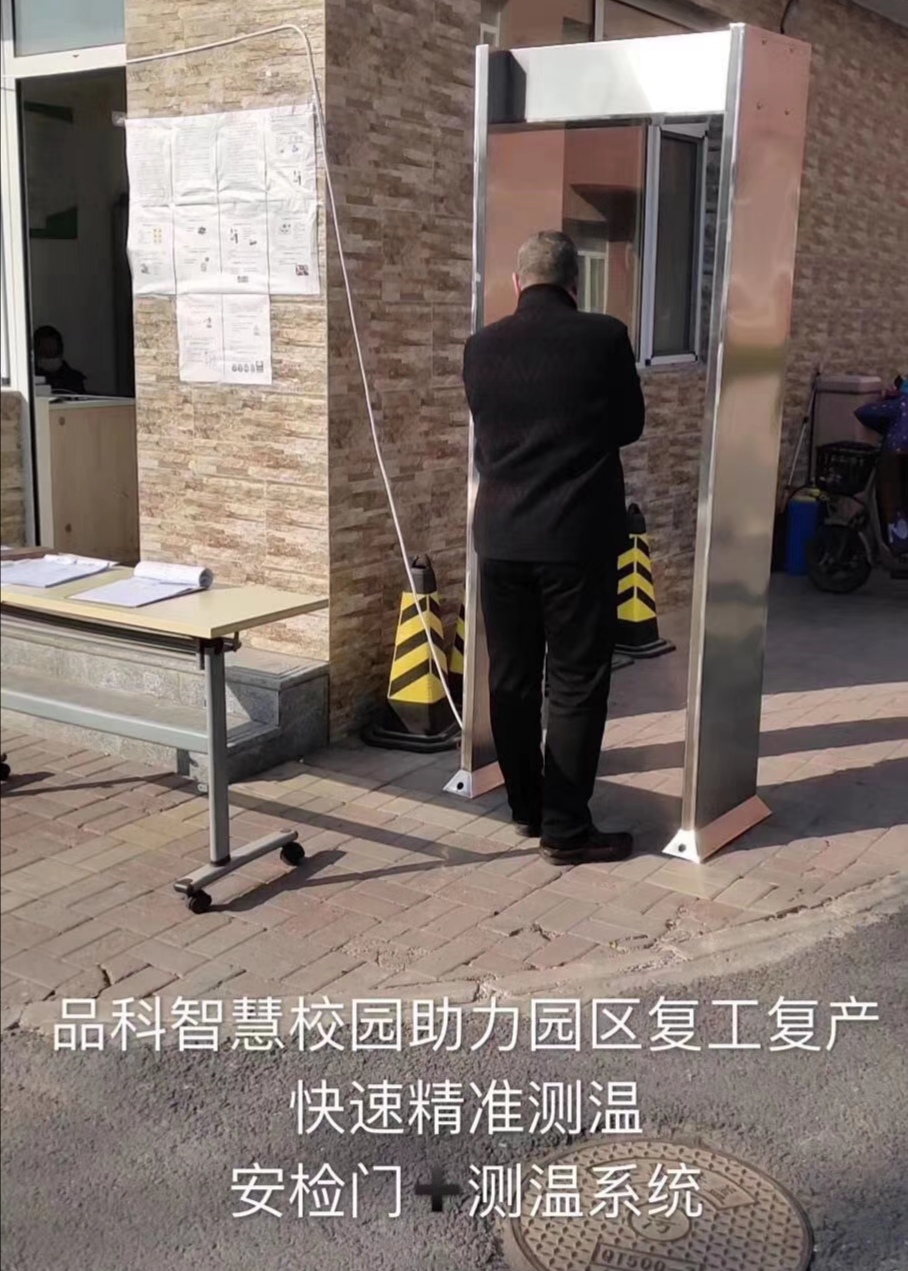 品科科技以高科技的手段守護(hù)著人員安全,園區(qū)員工伸出手腕即可測(cè)溫,實(shí)現(xiàn)了快速并且精準(zhǔn)的測(cè)溫,提高測(cè)溫效率,減輕了物業(yè)人員工作量。當(dāng)人的體溫異常時(shí),智能人體測(cè)溫門(mén)就會(huì)自動(dòng)發(fā)出警報(bào),篩選出高體溫的人,可有效防止新冠肺炎疫情蔓延,保證園區(qū)企業(yè)的順利復(fù)工。