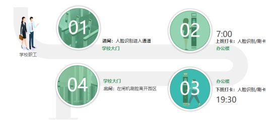 ③校園辦公:可定制結(jié)構(gòu)化智能化、可視化的園區(qū)數(shù)據(jù)分析,實(shí)現(xiàn)了校園人員通行和精細(xì)化管理