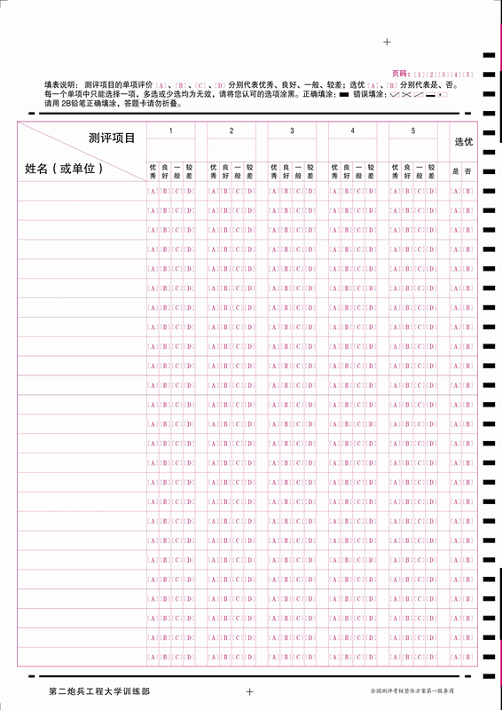 案例:第二炮兵工程大學(xué)現(xiàn)改名為:中國人民解放軍火箭軍工程大學(xué),位于陜西省省會(huì)西安市,是中國人民解放軍重點(diǎn)院校,訓(xùn)練部需要的答題卡并不是一般考試的答題卡,而是測評(píng)項(xiàng)目的答題卡。